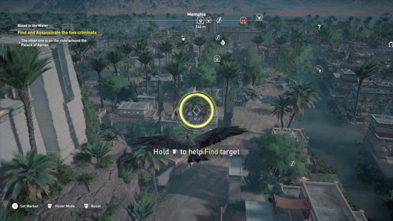 If you go after a target while underleveled, you might as well be fighting an indestructible tank. That means AC:O isn't so much a stealth game as a fighting game. The fact you have to constantly level up your weapons also feels silly in a "realistic" setting. As such, you have to do a lot of sidetreking in order to get to the end of the game. On the plus side, we do have a great new advantage in gameplay with Semu the Eagle. Bayek, for whatever reason, can see through his pet eagle's eyes and this allows you to mark targets as well as discover secrets about locations before planning your attacks. I also applaud the removal of synchronization challenges with the game allowing you to kill targets however you want.